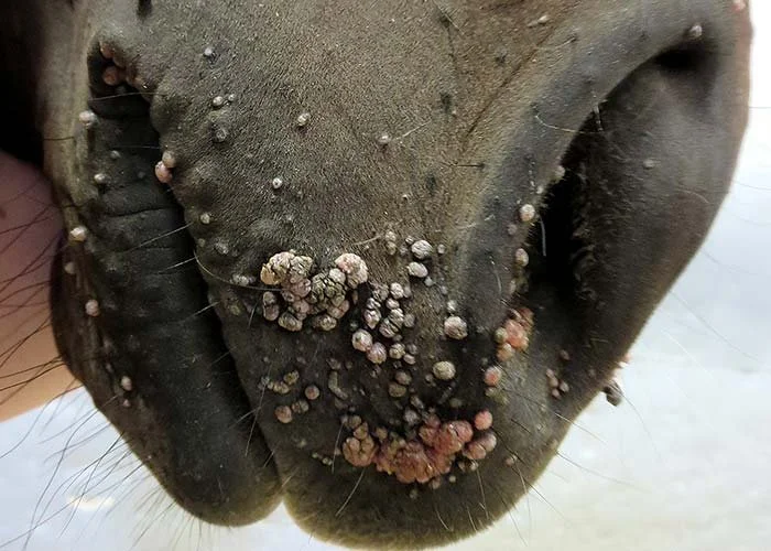 Equine warts are small, gray or pink cauliflower-like growths on the skin that can appear singly or in clusters, most commonly on the muzzle or around the eyes but also occasionally on the ears, genitals and lower legs. We have already learned above that Equine Sarcoids are caused by the Bovine Papillomavirus, whereas warts are caused by the similar Equine Papillomavirus, an organism that can survive on skin, equipment and structures for weeks at a time. Horses under 3 years of age are most susceptible to the virus due to thier weaker immune system, however they can appear on adults aswell. The good news is warts are harmless, unless of course they interfere with the horse eating, blinking, moving or are present where tack sits. When left alone, they will typically shrink and disappear over the course of about four months as the young horse’s immune system develops. They can persist a little longer when contracted by an adult. If you are concerned about the appearance or length of time the warts has been present, there are removal or immune boosting options that can be prescribed by your veterinarian. You can prevent the spreading through your herd by isolating the affected horses, making sure they dont share feed, water, tack or equipment or can touch noses with anyone else.